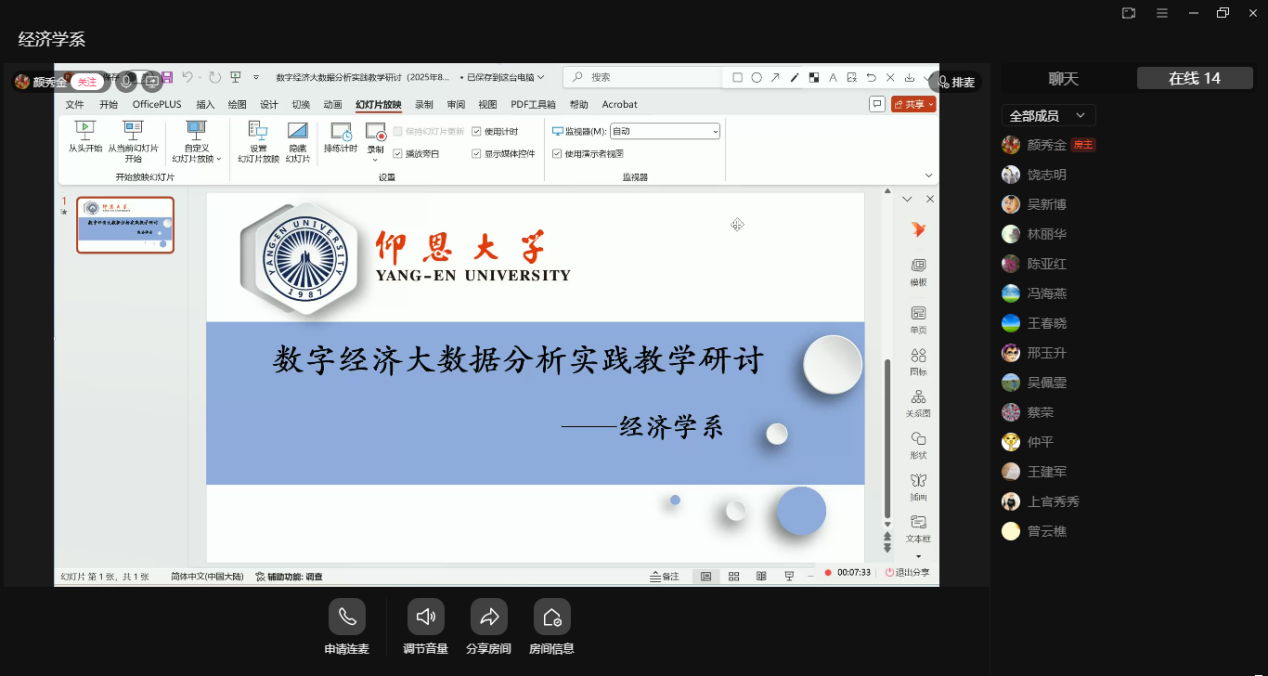 本次线上研讨会不仅为经济学系员工提供了一个宝贵的交流学习平台,更明晰了未来实践教学改革的方向。经济学系将以此次研讨会为契机,进一步凝聚共识,整合资源,加快完善数字经济方向的实践教学体系,致力于培养出更多能够适应并引领数字经济发展的复合型、创新型经济学人才。(yl88858cc永利官网 经济学系/图文 审核:颜秀金、黄培真)