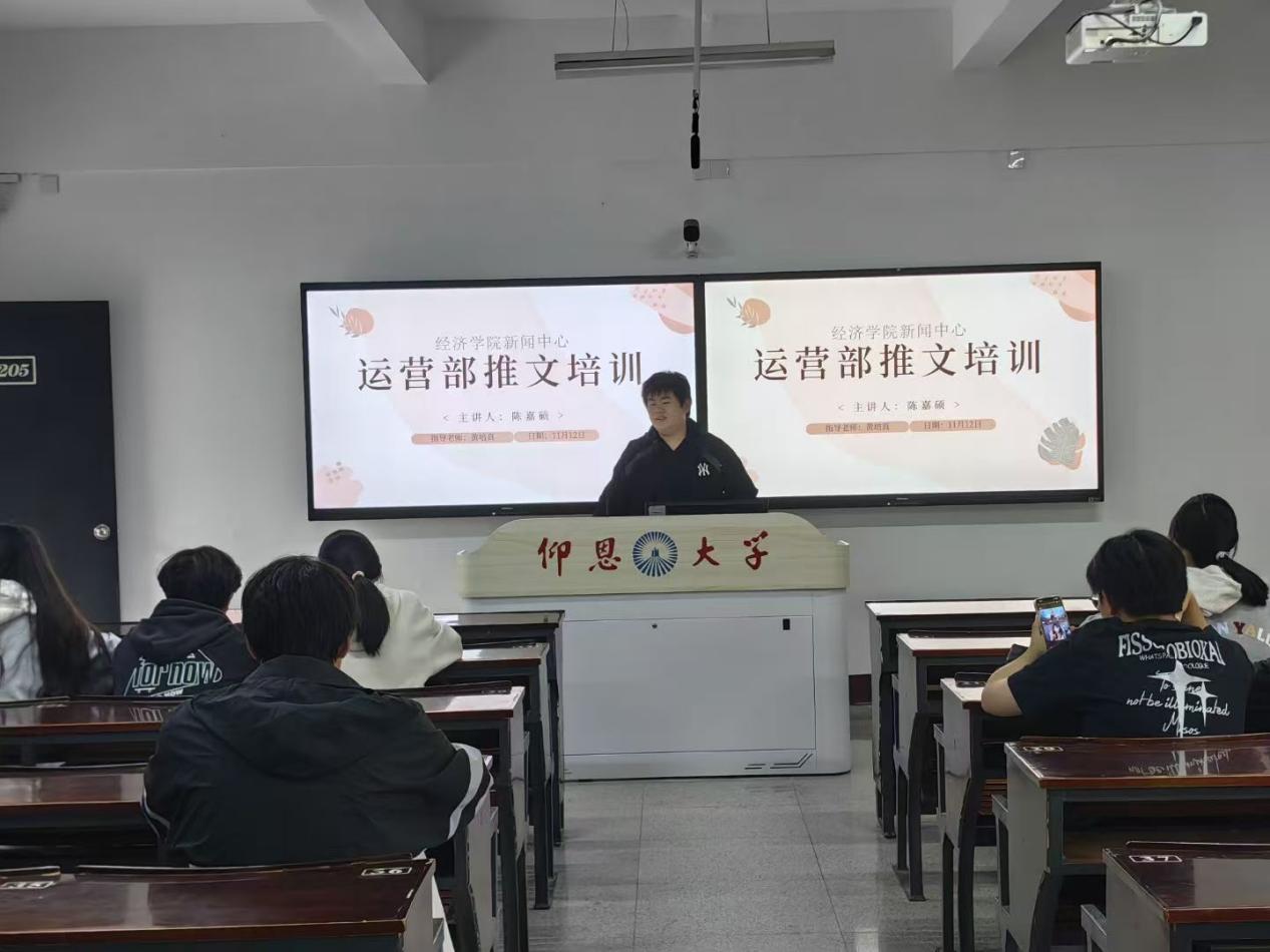 为进一步提升新闻中心运营部成员的业务能力,保障新闻宣传工作高效推进,11月12日,新闻中心运营部组织开展了一场针对性强的业务培训,本此培训从整体大框架入手为新生仔细讲解运营部的具体职能、工作内容,具体讲解示范推文的制作、要求格式,切实讲解运营工作的本质,解决部门成员对工作的疑惑,助力运营部团队专业能力全面升级。