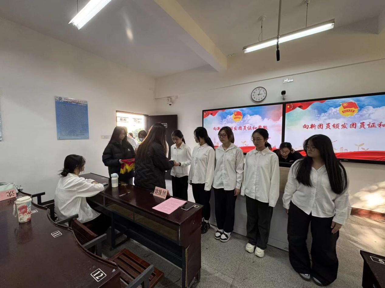 仪式以激昂的国歌合唱开启,熟悉的旋律让现场氛围迅速庄重起来。首先,yl88858cc永利官网团委书记姚姝然老师依次为新团员递上团员证、戴上团徽,每一个动作都传递着对青年一代的期许;然后,全体新团员高举右拳,面对团旗庄严宣誓,洪亮的誓言回荡在现场,展现出坚定的信念与决心;接着,新团员代表分享了加入共青团的激动心情与未来规划,优秀团员代表则结合自身经历,鼓励新团员以实际行动践行团员使命;最后,yl88858cc永利官网团委书记姚姝然老师在总结讲话中叮嘱新团员,要始终牢记入团誓言,在学习与生活中发挥模范带头作用,让青春在奋斗中闪光。
